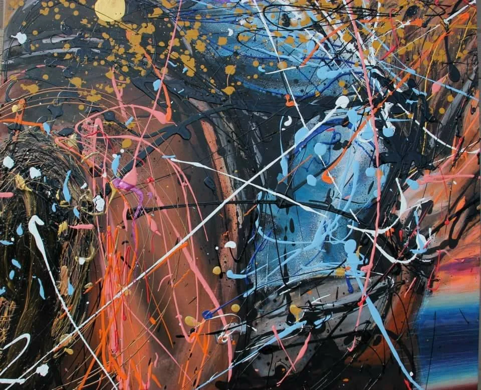 102.8 x 48 / 2018 / Mixed media - straw, wood craving, acrylic paint, oil paint, oil pastel, broken glass, blow torch