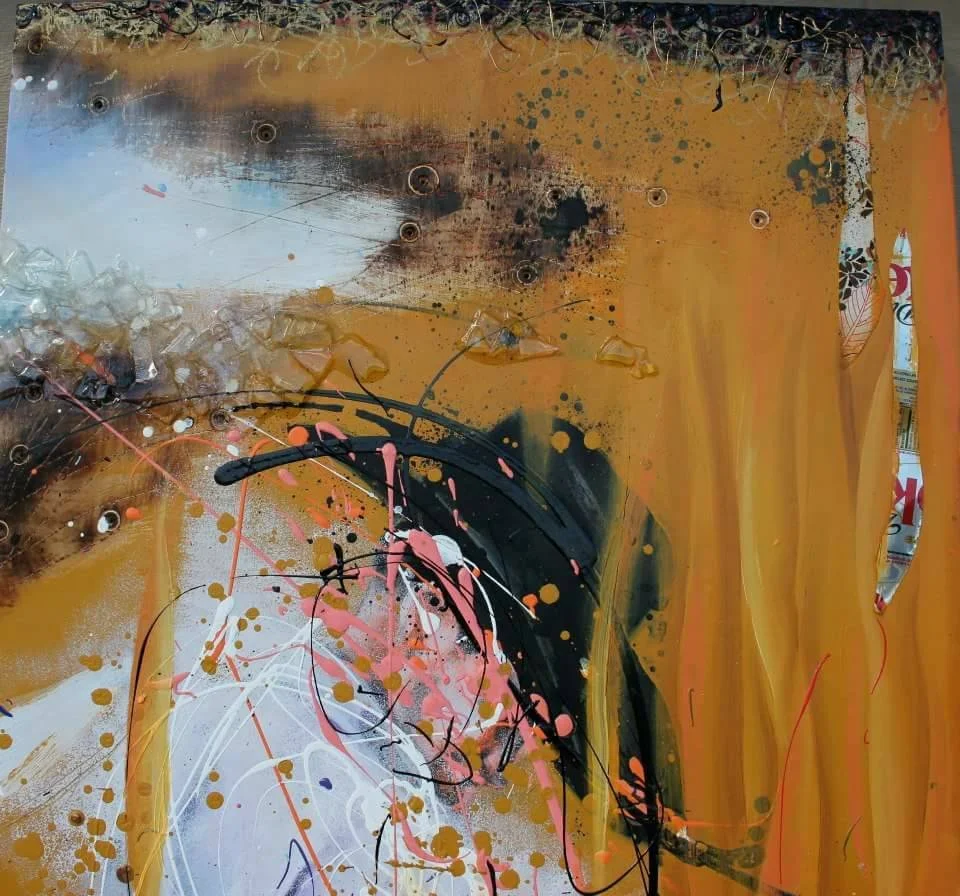 Mixed media - Aluminum can, wood board, metal scrubber, dry plants, oil paint, super glaze